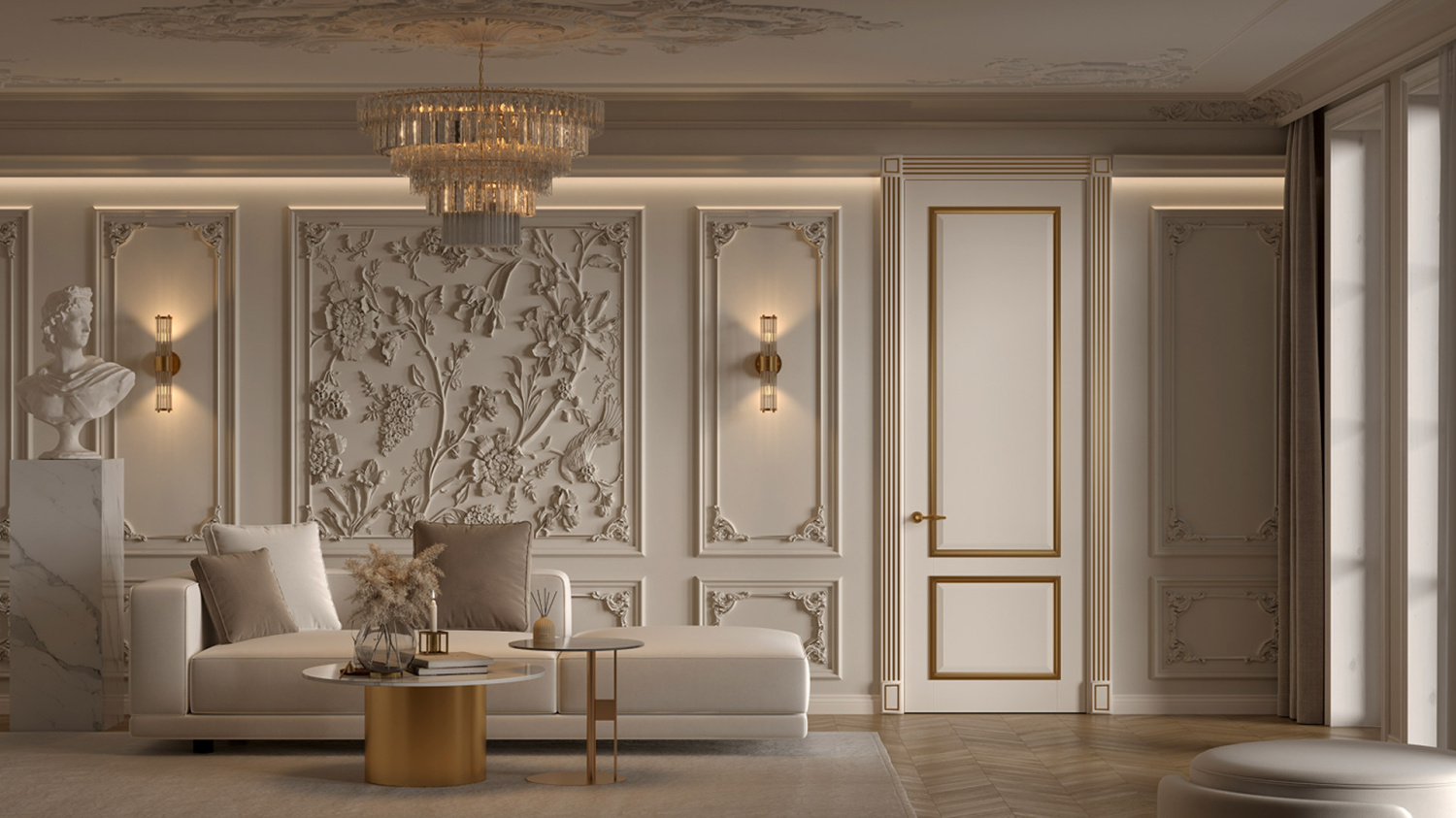 Мы создаём продукцию, которая сочетается по цвету, дизайну и фактуре. Предлагаем комплексный подход отделки стен, проёмов колонн, потолков. Все составляющие интерьера можно оформить в едином стиле.